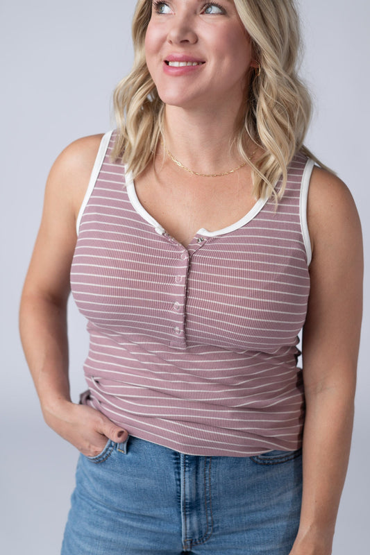 IN STOCK Shiloh Button Snap Tank - Dusty Rose