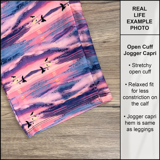 RTS - Navy Pink Flamingos Capri Leggings w/ Pockets