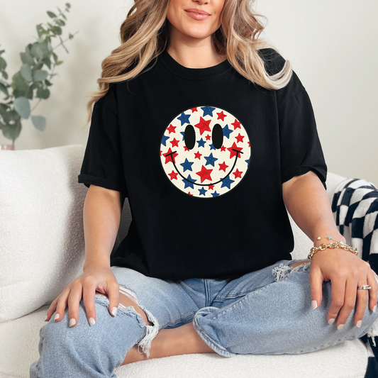 Red, White & Blue Smiley Graphic Tee