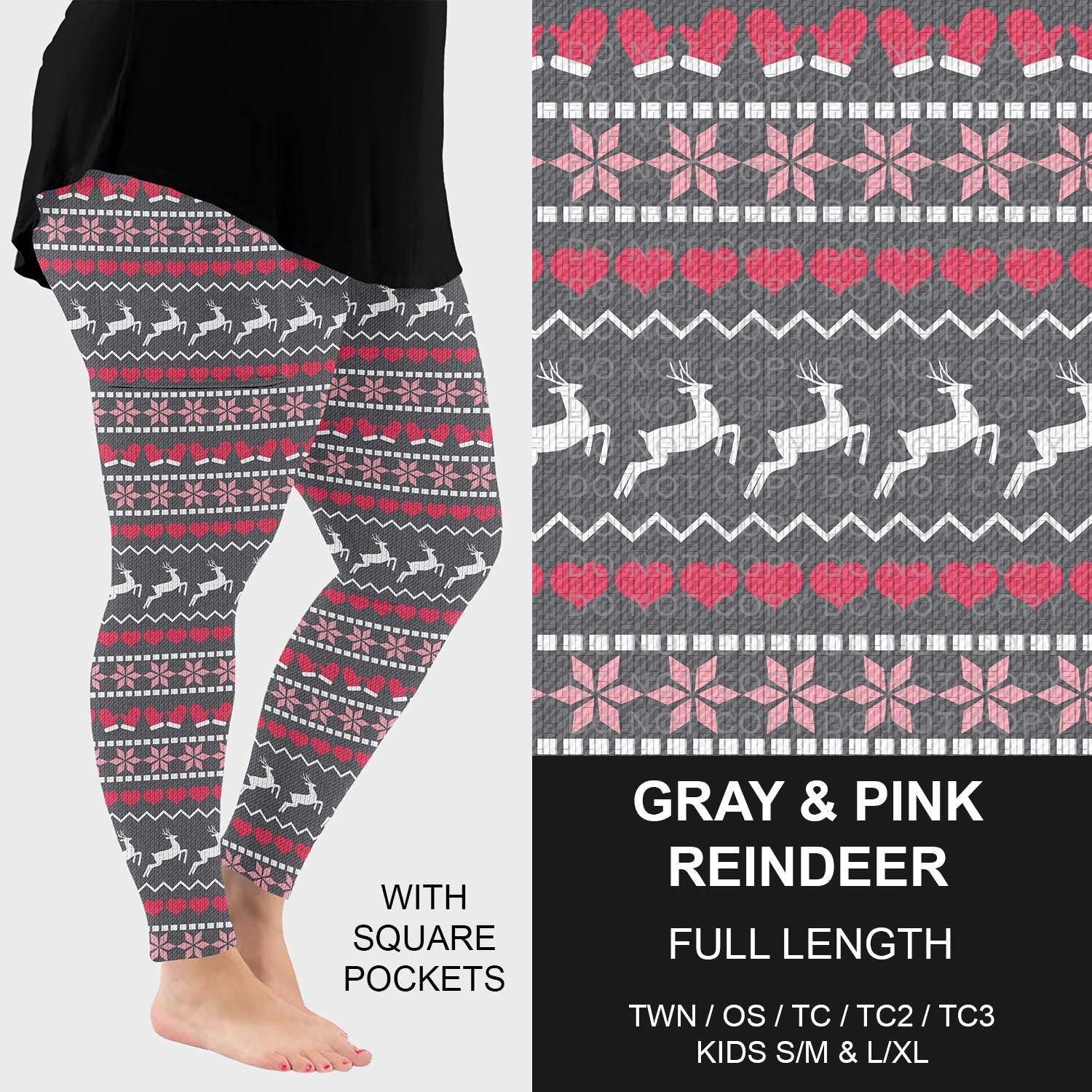 B255 - Preorder Gray and Pink Reindeer Leggings w/ Pockets (Closes 10/12. ETA early Dec.)