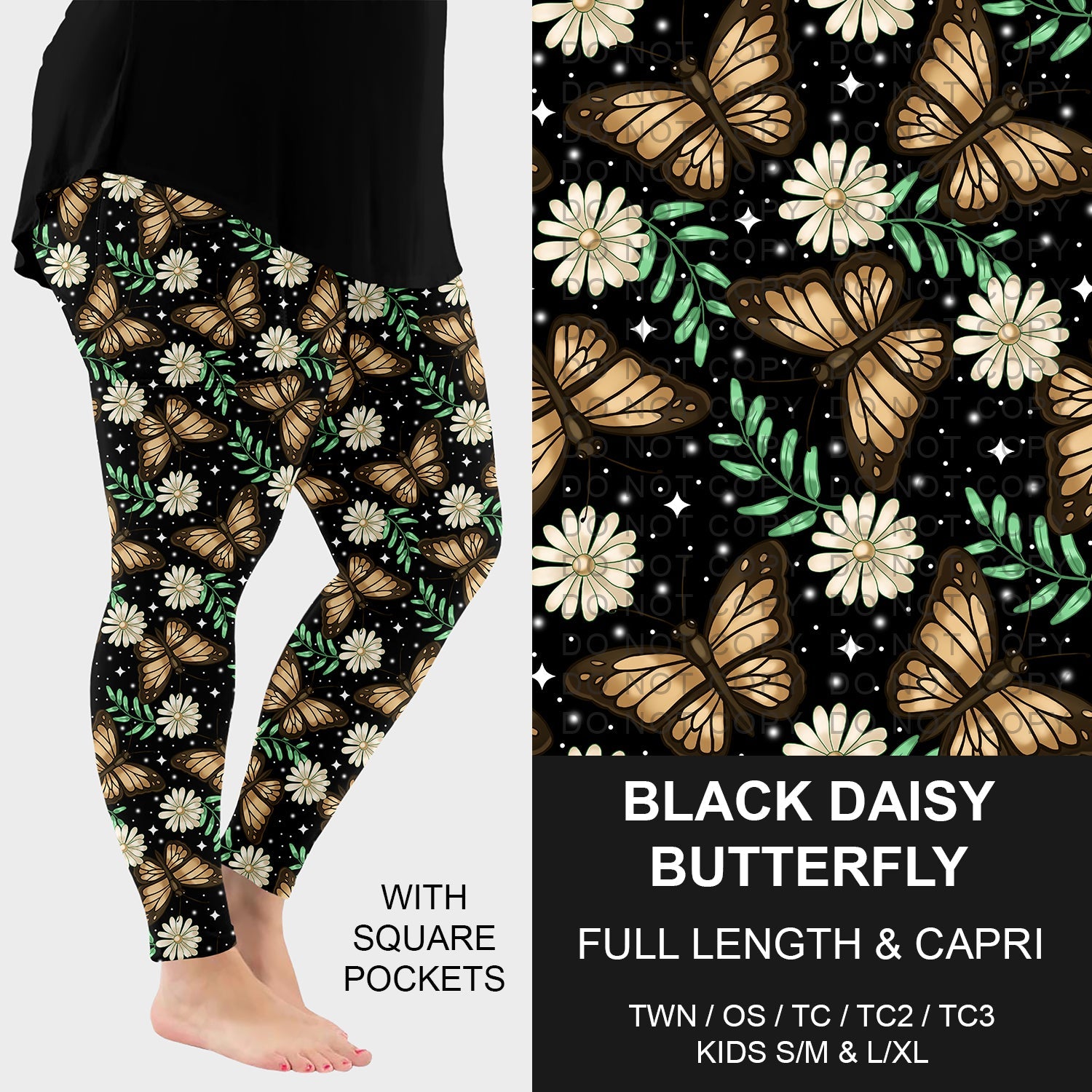 B273 - Preorder Black Daisy Butterfly Leggings w/ Pockets (Closes 2/15. ETA: late April)
