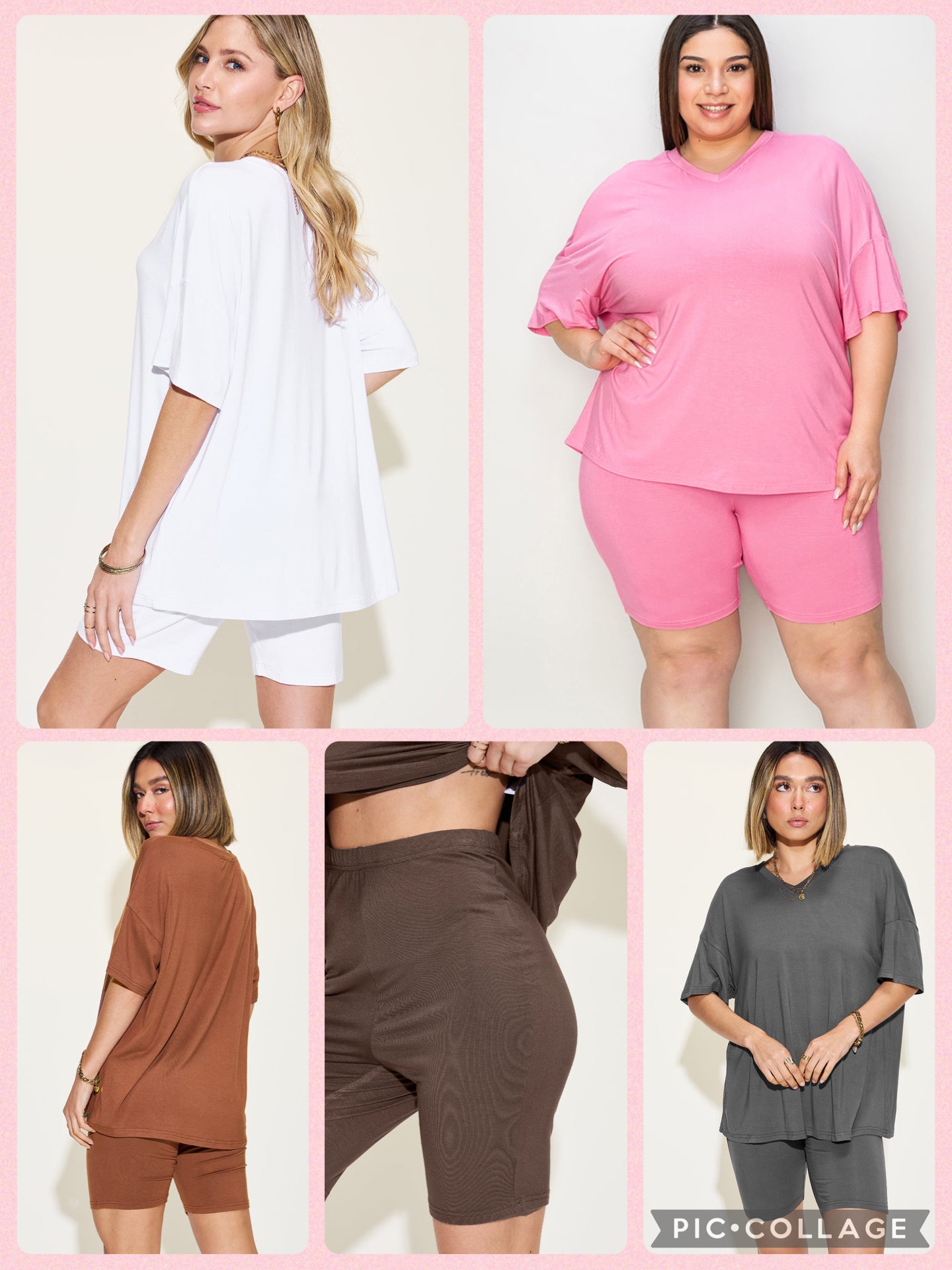 V-Neck Drop Shoulder T-Shirt and Shorts Set