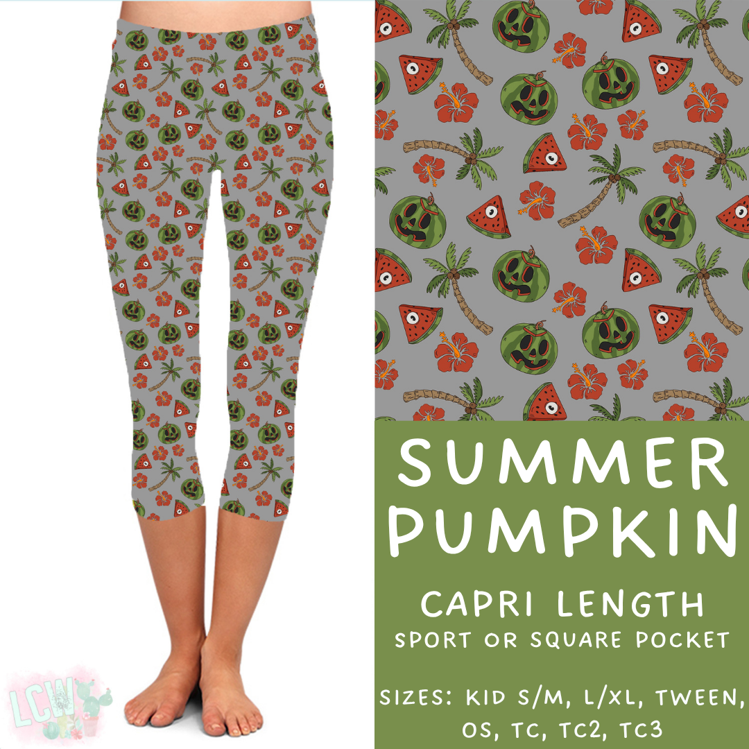 Ready to Ship - Summer Pumpkin Capri Length Leggings - TC2 Square Pocket