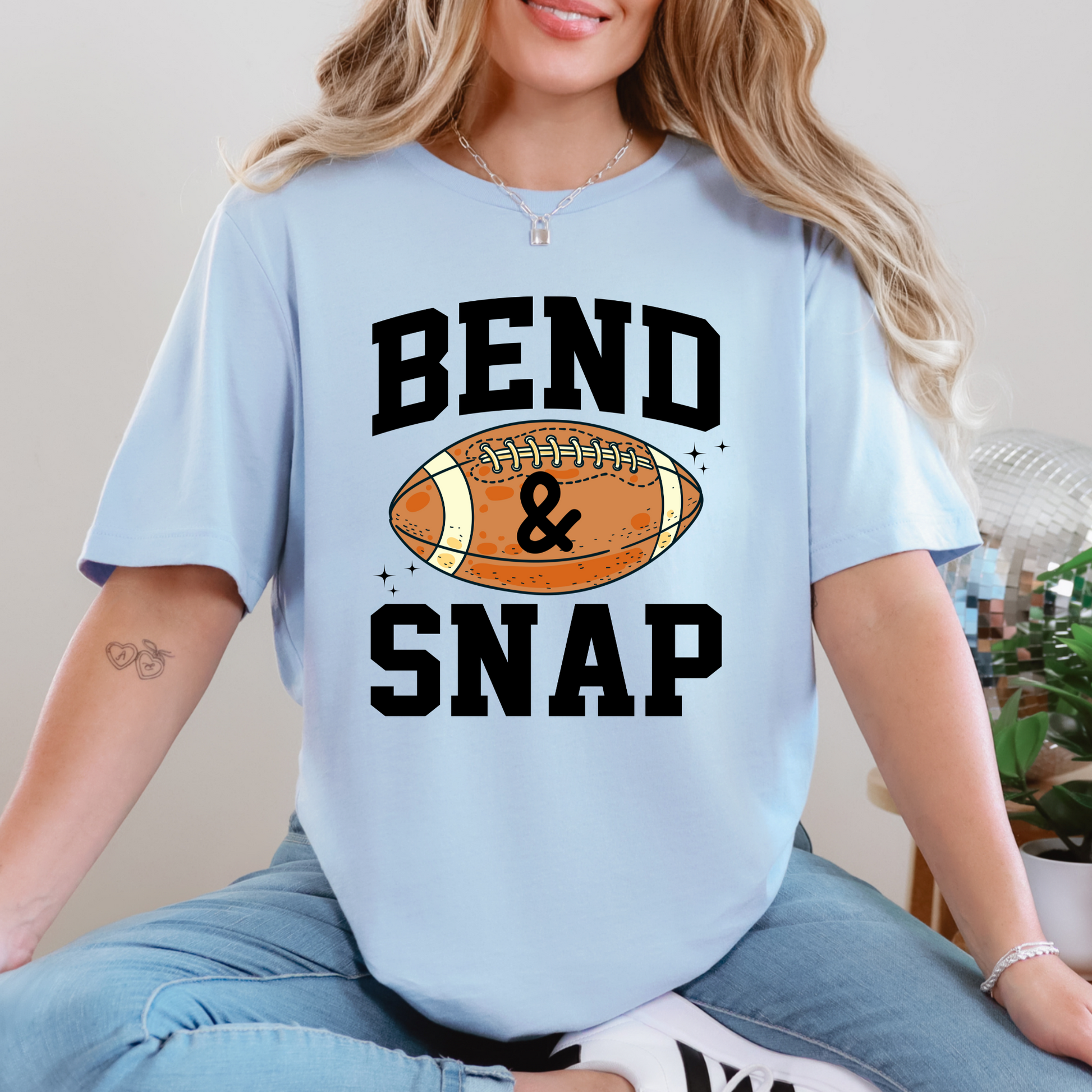 Show off your love for game day with this fun “Bend & Snap” graphic tee! Featuring a bold football design, it’s the perfect mix of sporty and playful. Made with soft, comfy fabric—ideal for tailgates, game nights, or just cheering from the couch.