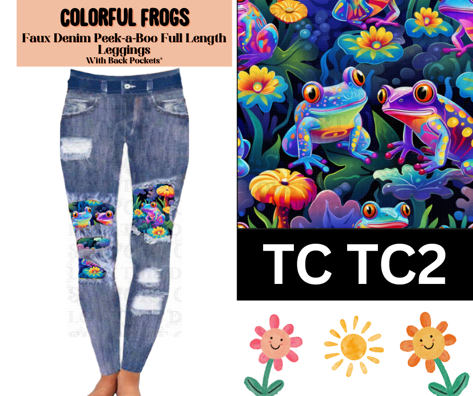 Colorful Frogs Faux Denim Full Length Peekaboo Leggings