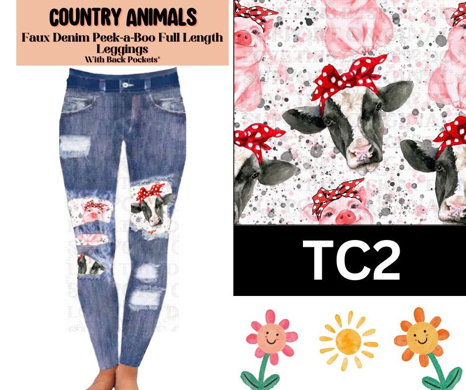 Country Animals Faux Denim Full Length Peekaboo Leggings
