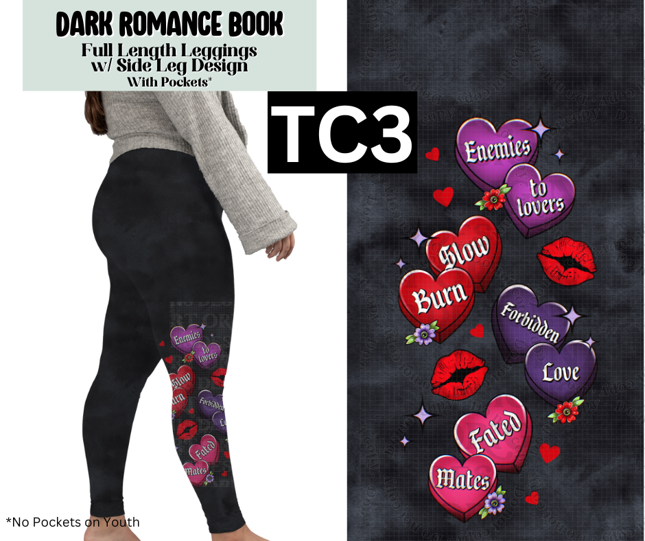 Dark Romance Book Full Length Leggings w/ Side Leg Designs