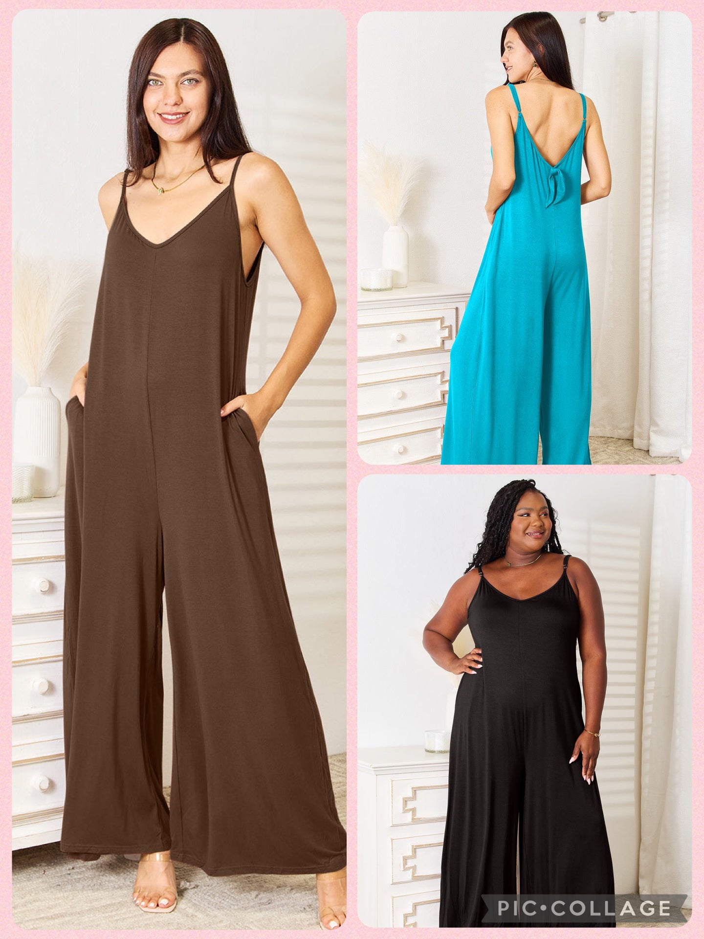 Soft Rayon Spaghetti Strap Tied Wide Leg Jumpsuit - 3 Colors Available!