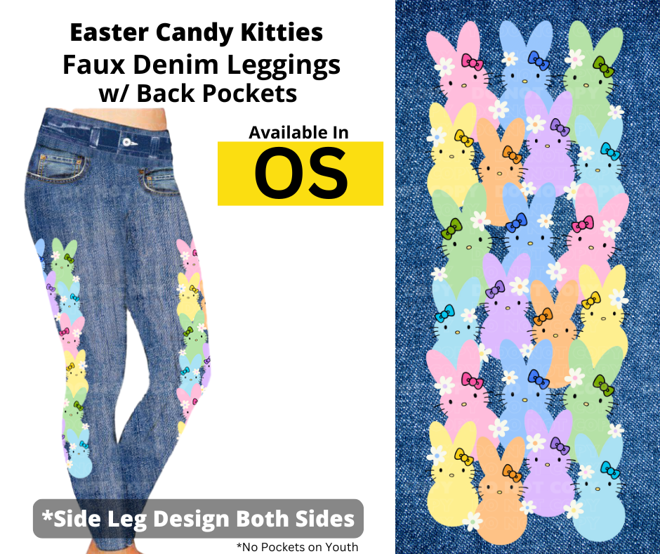 Easter Candy Kitties Full Length Faux Denim w/ Side Leg Designs