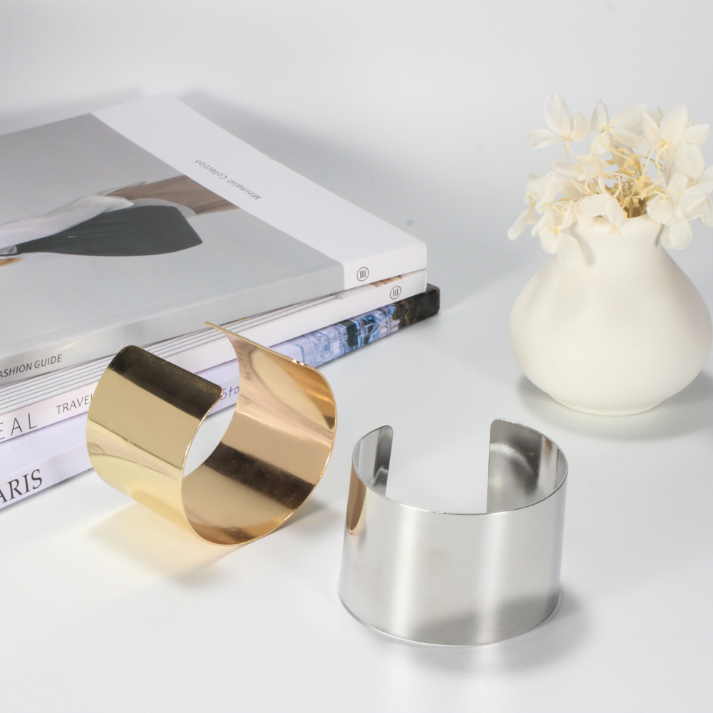 Enhance your everyday style with our Gypsy Open Bangle featuring a wide cuff design, adding a touch of modern elegance to your outfits.