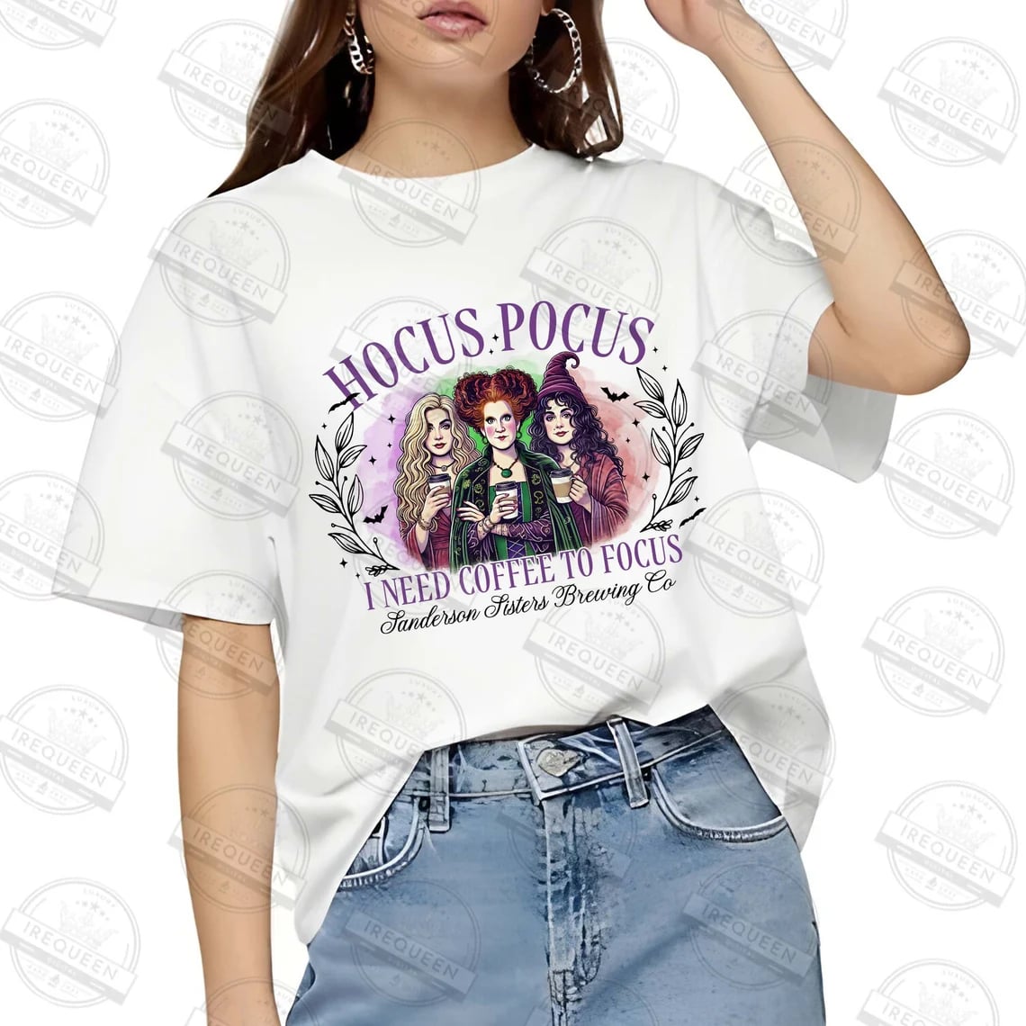 Brew up some spooky style with our “Hocus Pocus, I Need Coffee to Focus” tee! Featuring skeleton versions of your favorite witchy trio and a caffeine-loving twist, this fun Halloween shirt is perfect for coffee addicts and spell-casters alike.