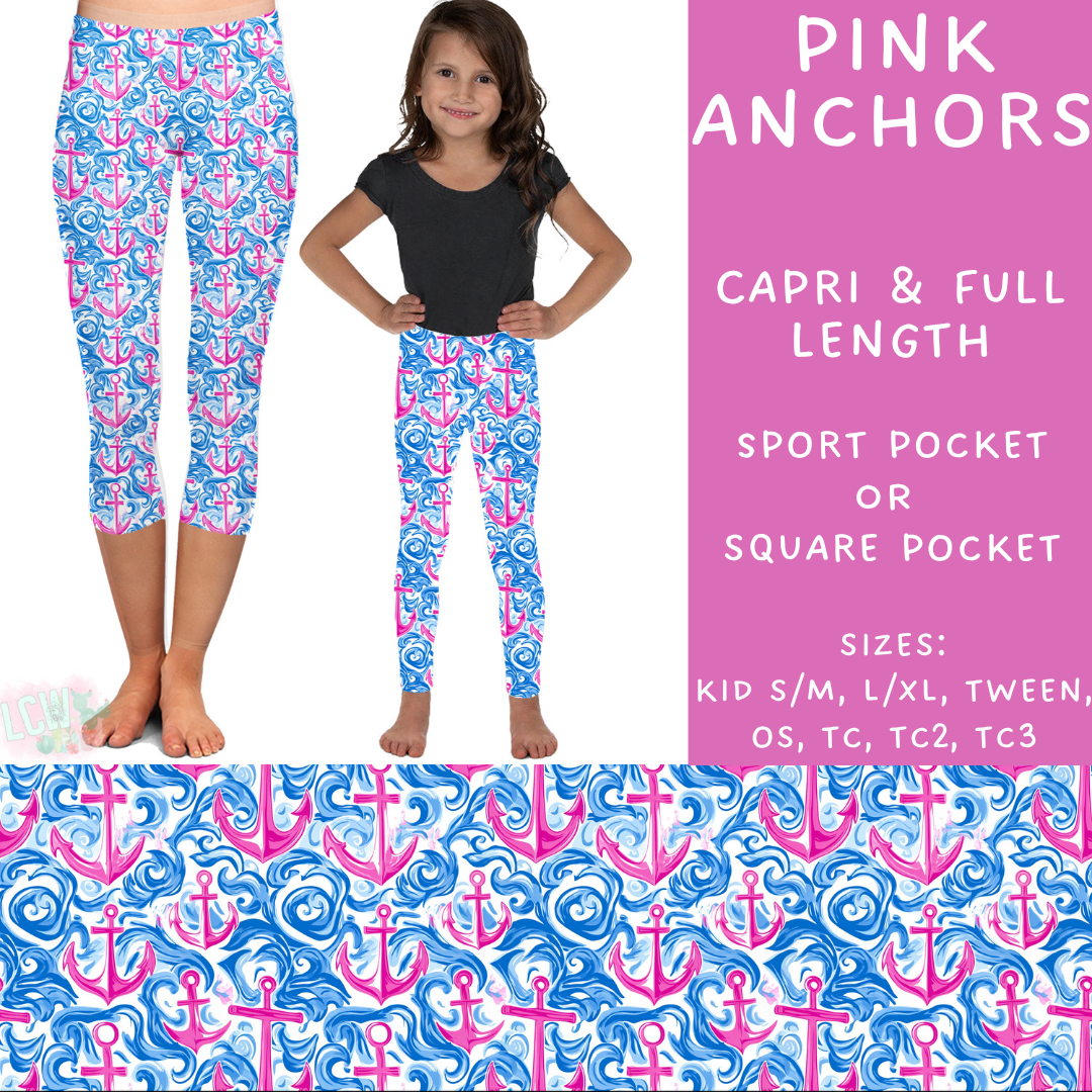 Ready to Ship - Pink Anchors Capri Length Leggings - OS & TC Sport Pocket