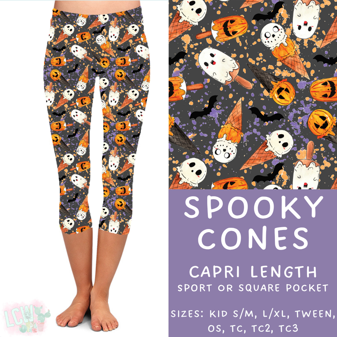 Ready to Ship - Spooky Cones Capri Length Leggings - OS Sport Pocket & TC2 Square Pocket