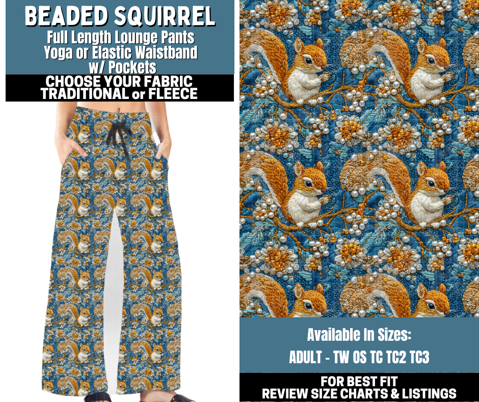 Preorder! Closes 10/13. ETA Jan. Beaded Squirrel Lounge Pants Choose Fleece or Traditional