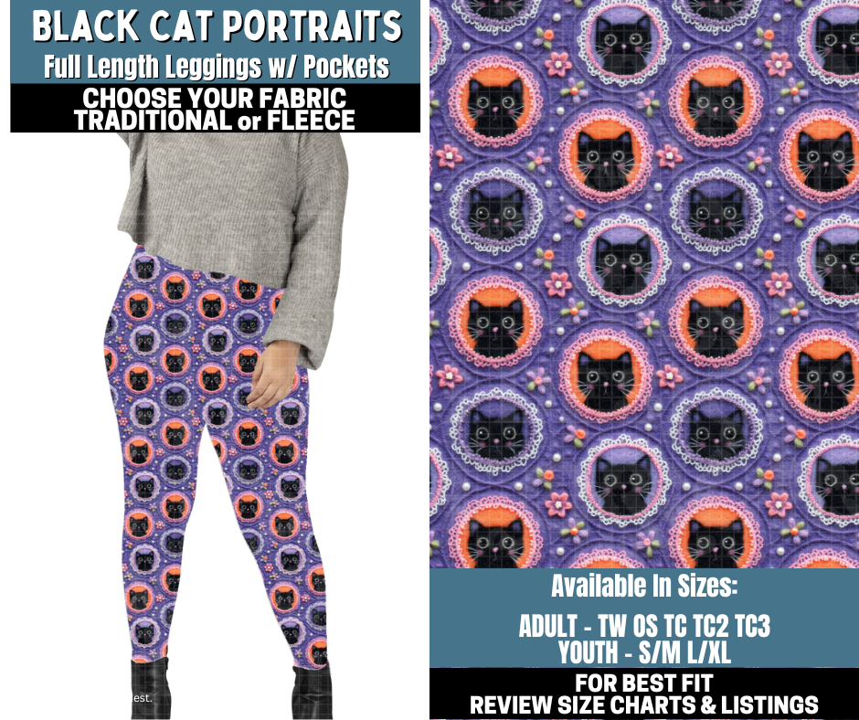 Preorder! Closes 10/13. ETA Jan. Black Cat Portraits Leggings Choose Fleece or Traditional
