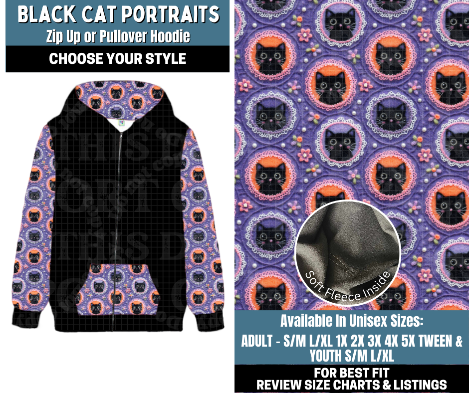 Preorder! Closes 10/13. ETA Jan. Black Cat Portraits Zip-Up or Pullover Hoodie