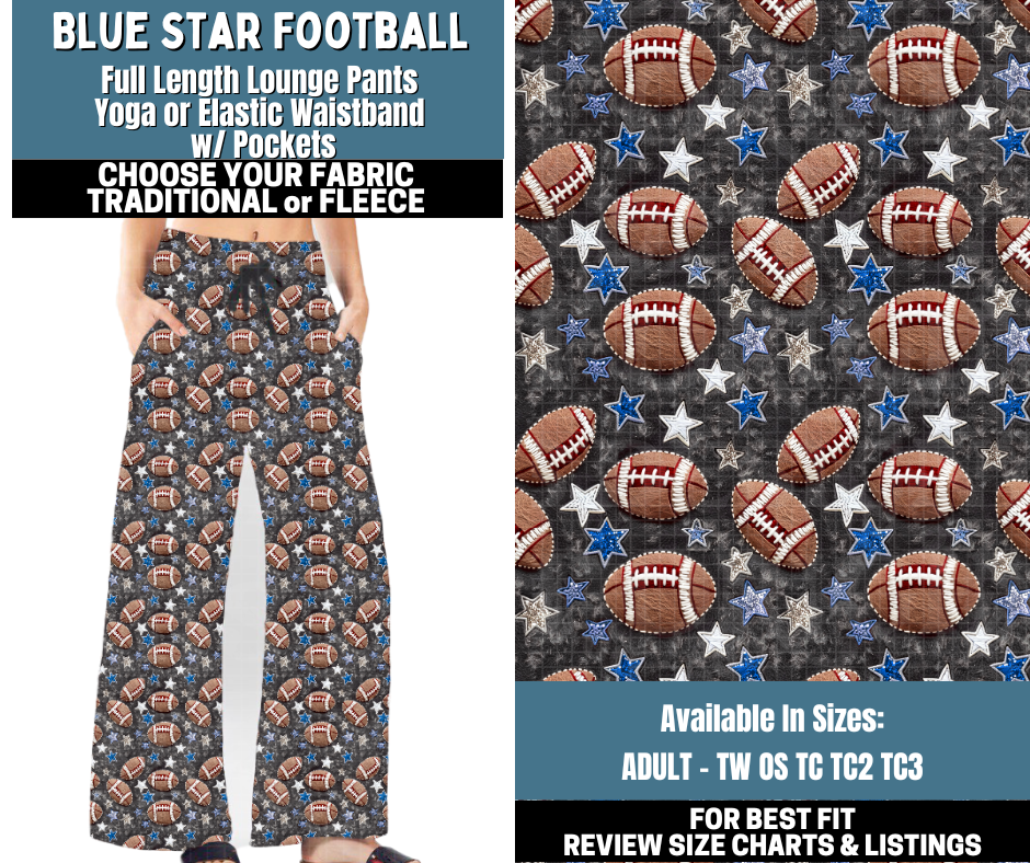 Preorder! Closes 10/13. ETA Jan. Blue Star Football Lounge Pants Choose Fleece or Traditional