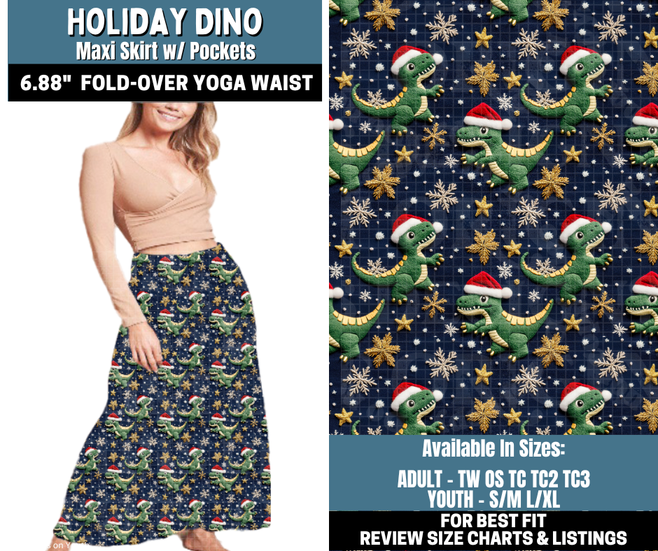 Preorder! Closes 10/13. ETA Jan. Holiday Dino Maxi Skirt