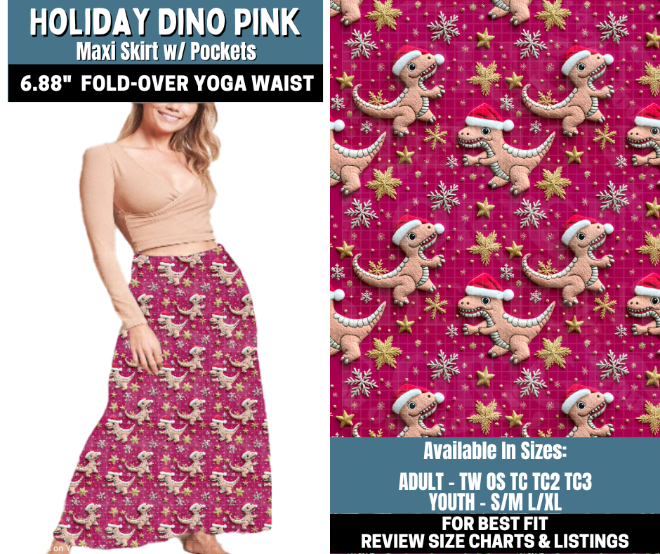 Preorder! Closes 10/13. ETA Jan. Holiday Dino Pink Maxi Skirt