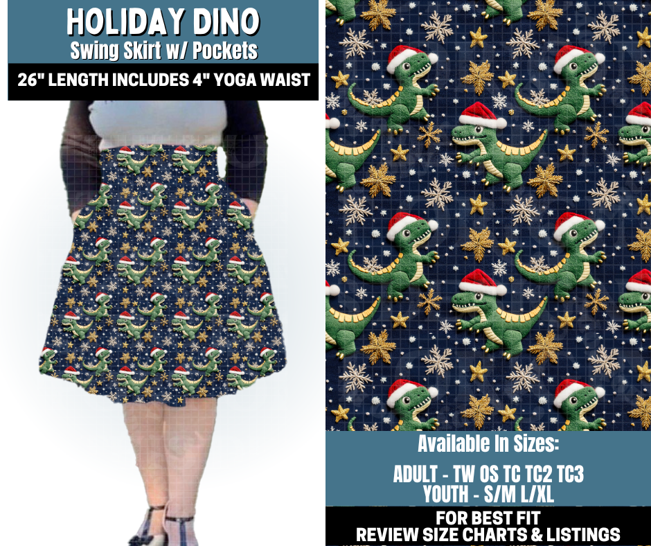 Preorder! Closes 10/13. ETA Jan. Holiday Dino Swing Skirt