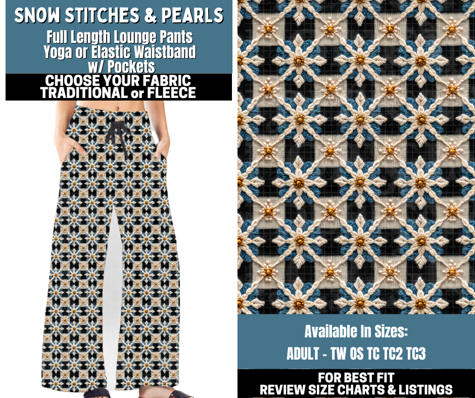 Preorder! Closes 10/13. ETA Jan. Snow Stitches & Pearls Lounge Pants Choose Fleece or Traditional