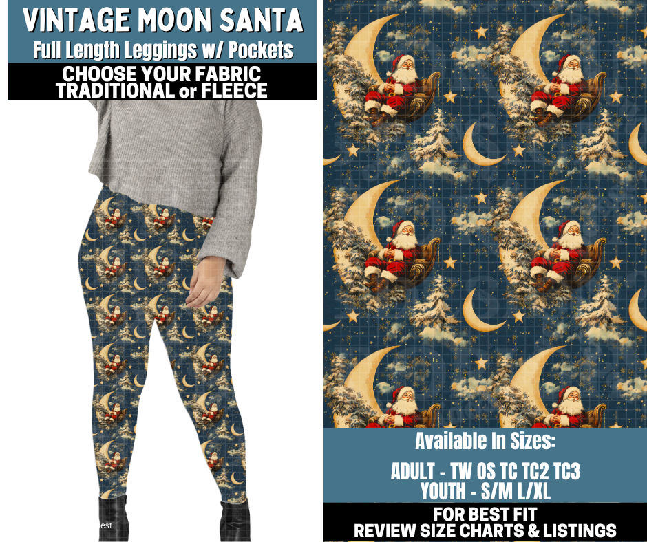 Preorder! Closes 10/13. ETA Jan. Vintage Moon Santa Leggings Choose Fleece or Traditional