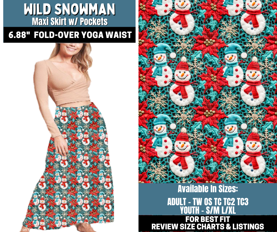 Preorder! Closes 10/13. ETA Jan. Wild Snowman Maxi Skirt