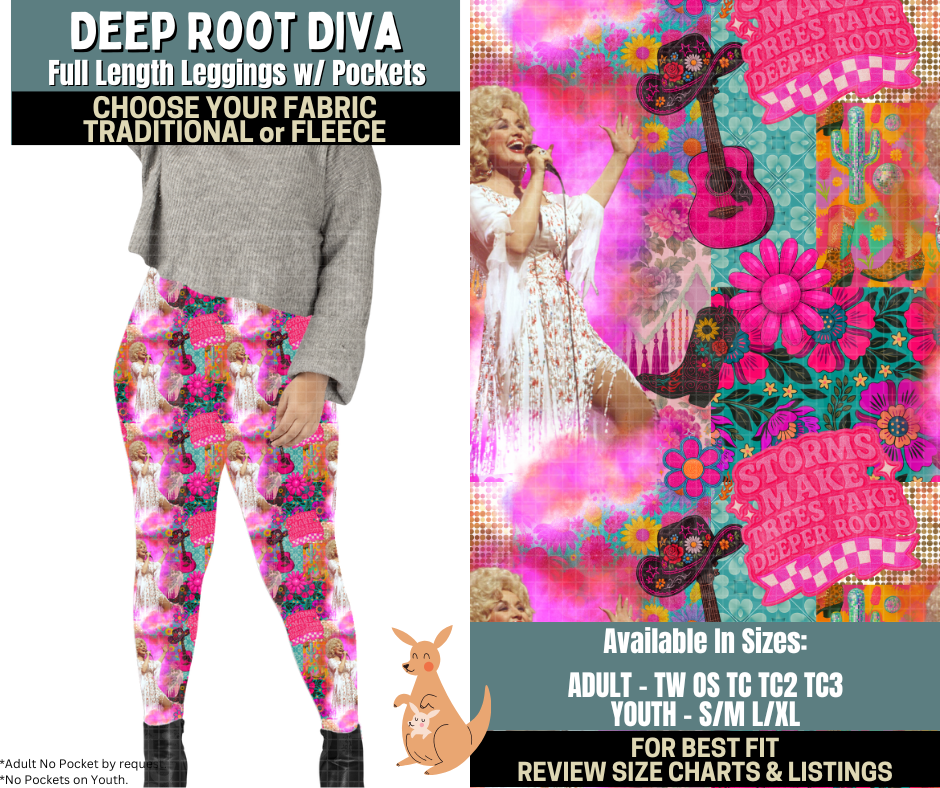 Preorder! Closes 10/2. ETA Dec. Deep Root Diva Leggings Choose Fleece or Traditional