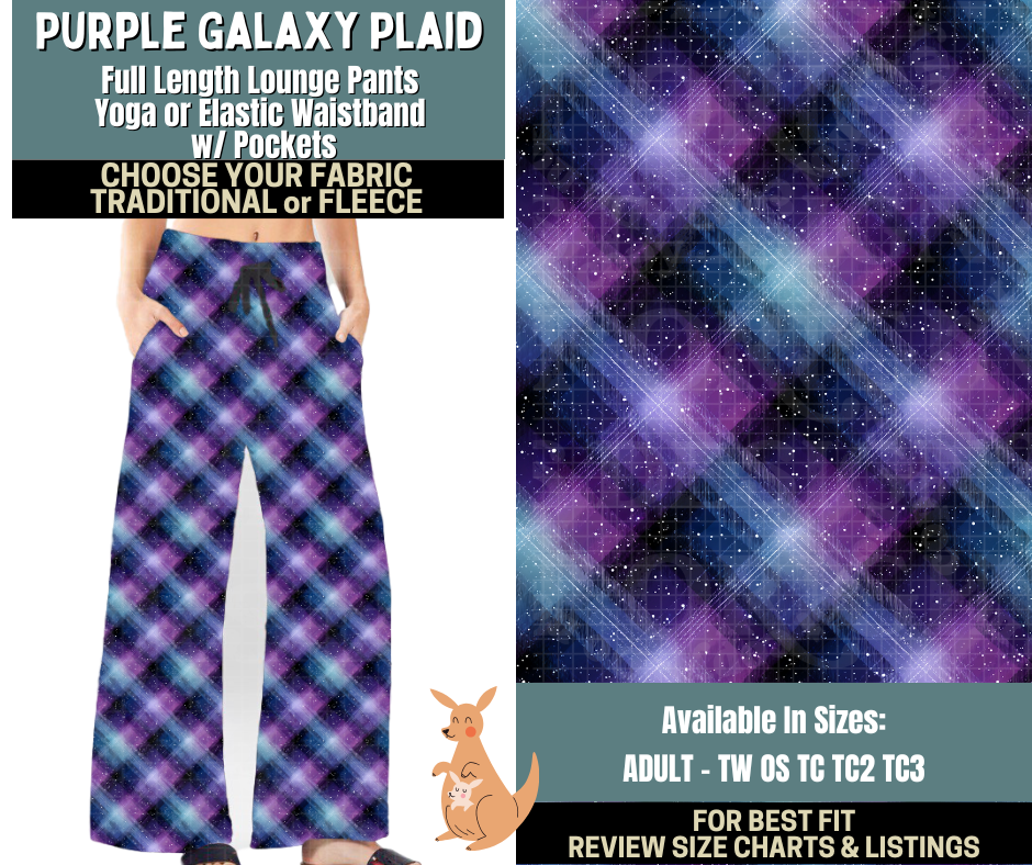 Preorder! Closes 10/2. ETA Dec. Purple Galaxy Plaid Lounge Pants Choose Fleece or Traditional