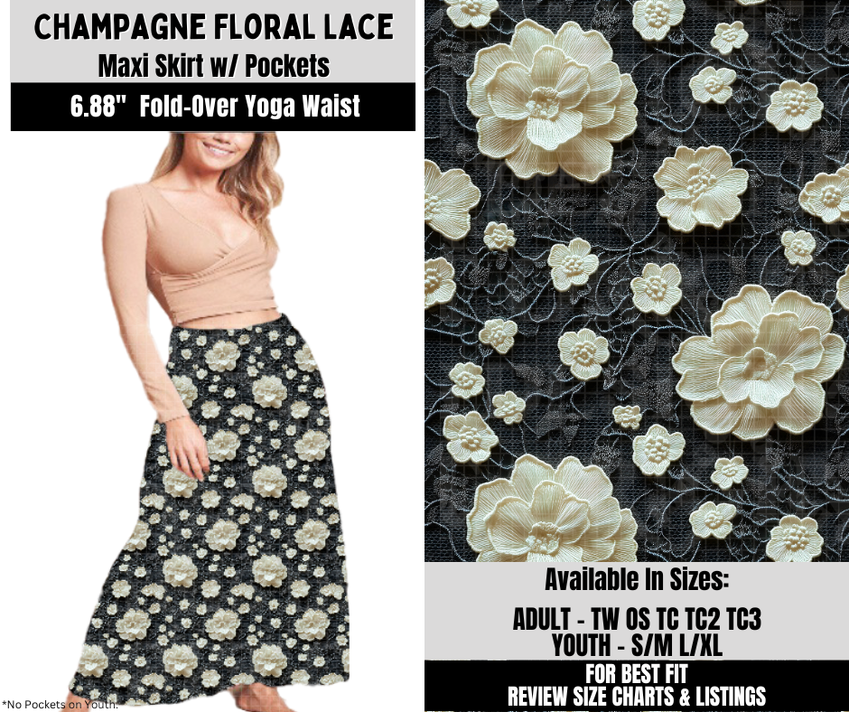 Preorder! Closes 10/6. ETA Dec. Champagne Floral Lace Maxi Skirt