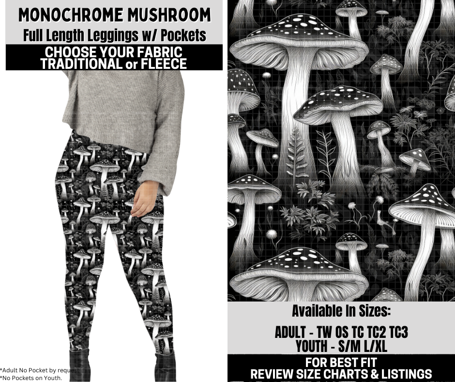 Preorder! Closes 10/6. ETA Dec. Monochrome Mushroom Leggings Choose Fleece or Traditional