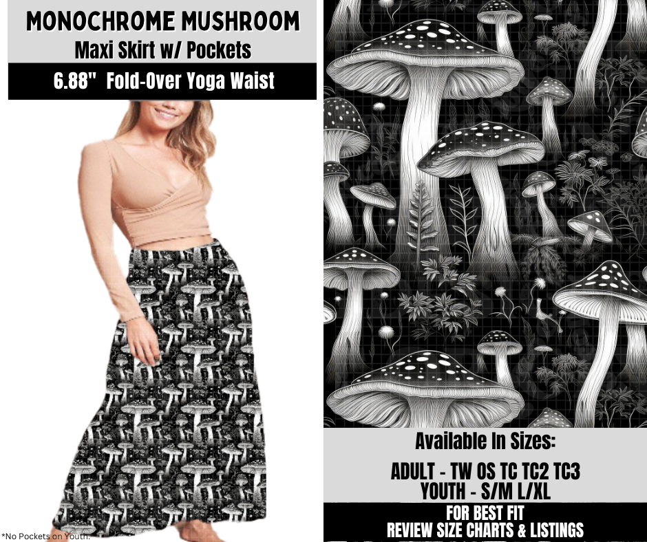 Preorder! Closes 10/6. ETA Dec. Monochrome Mushroom Maxi Skirt