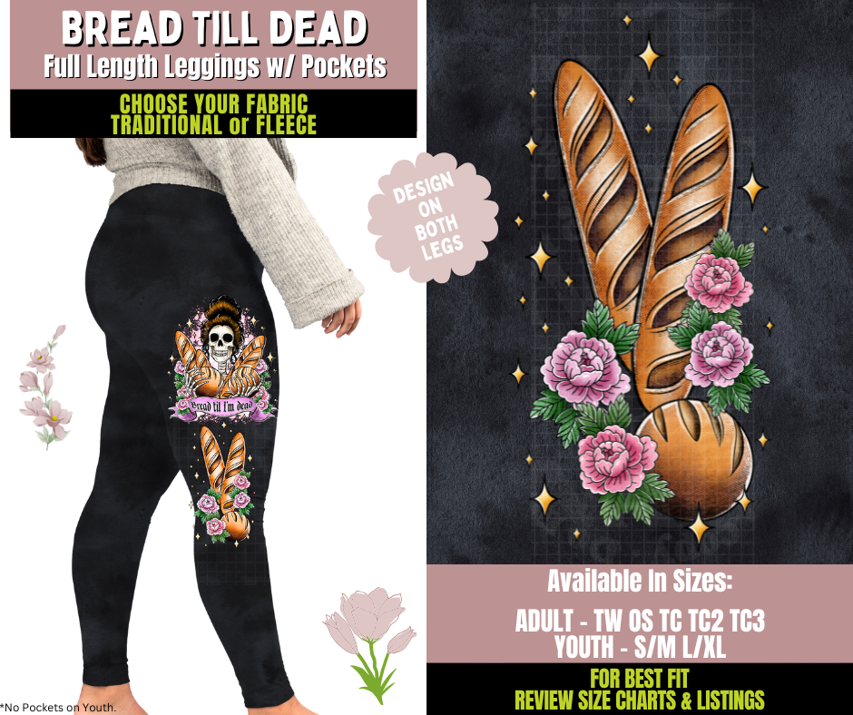 Preorder! Closes 10/8. ETA Dec. Bread Till Dead Watercolor Leggings w/ Side Leg Designs Choose Fleece or Traditional