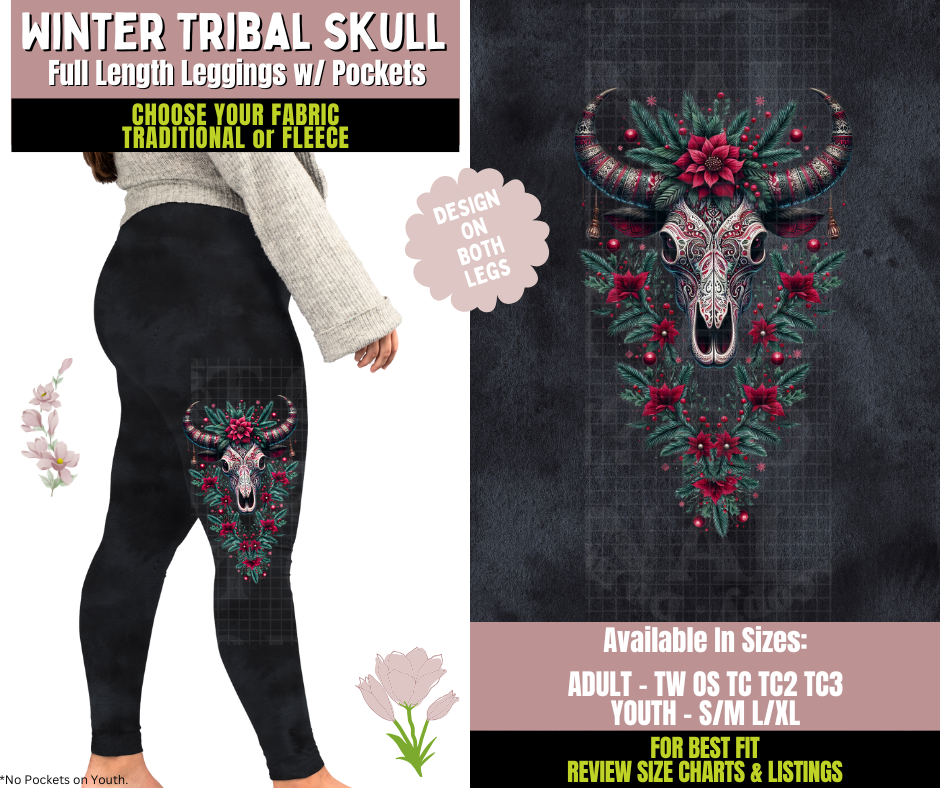 Preorder! Closes 10/8. ETA Dec. Winter Tribal Skull Watercolor Leggings w/ Side Leg Designs Choose Fleece or Traditional
