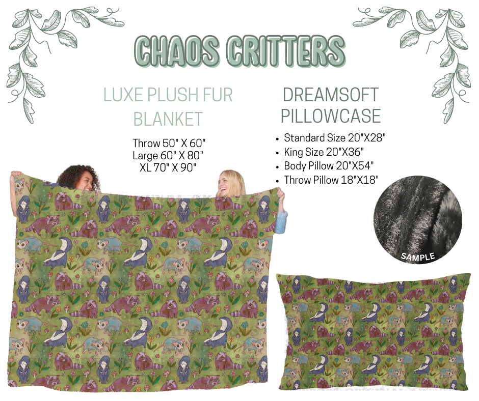 Preorder! Closes 10/9. ETA Dec. Chaos Critters Luxe Plush Fur Blanket and/or DreamSoft Pillowcase