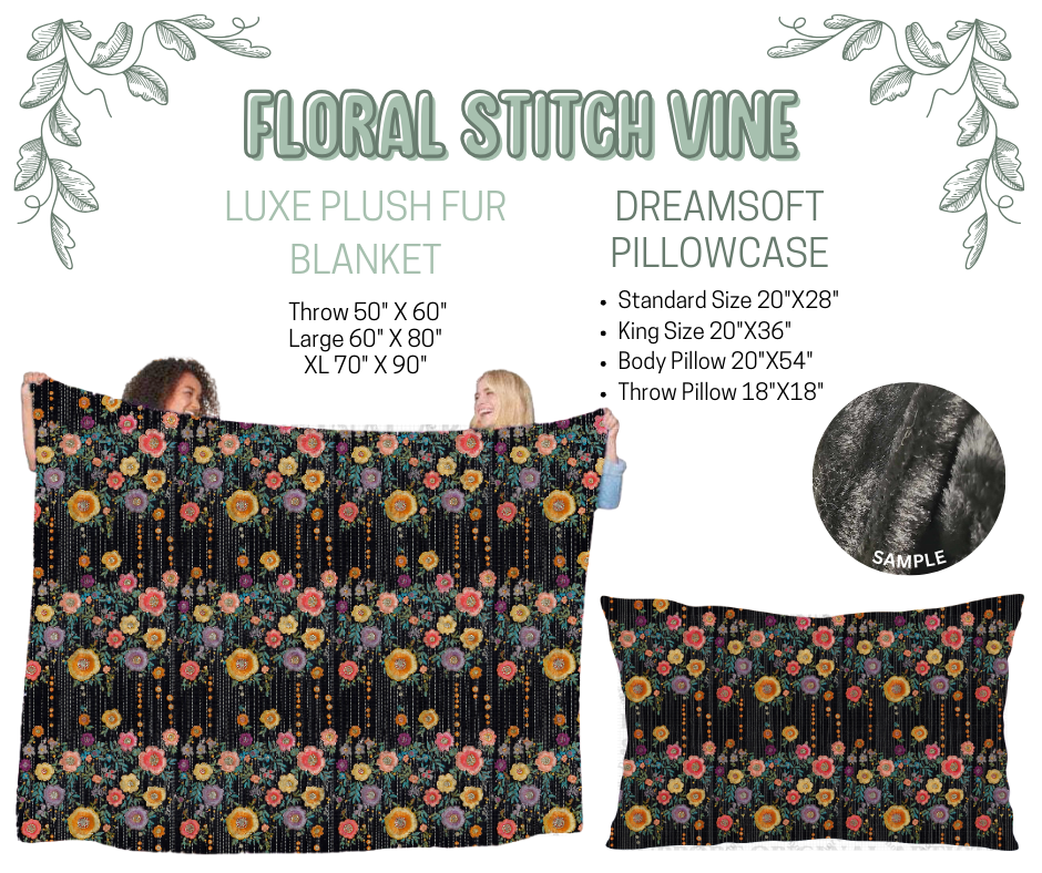Preorder! Closes 10/9. ETA Dec. Floral Stitch Vine Luxe Plush Fur Blanket and/or DreamSoft Pillowcase
