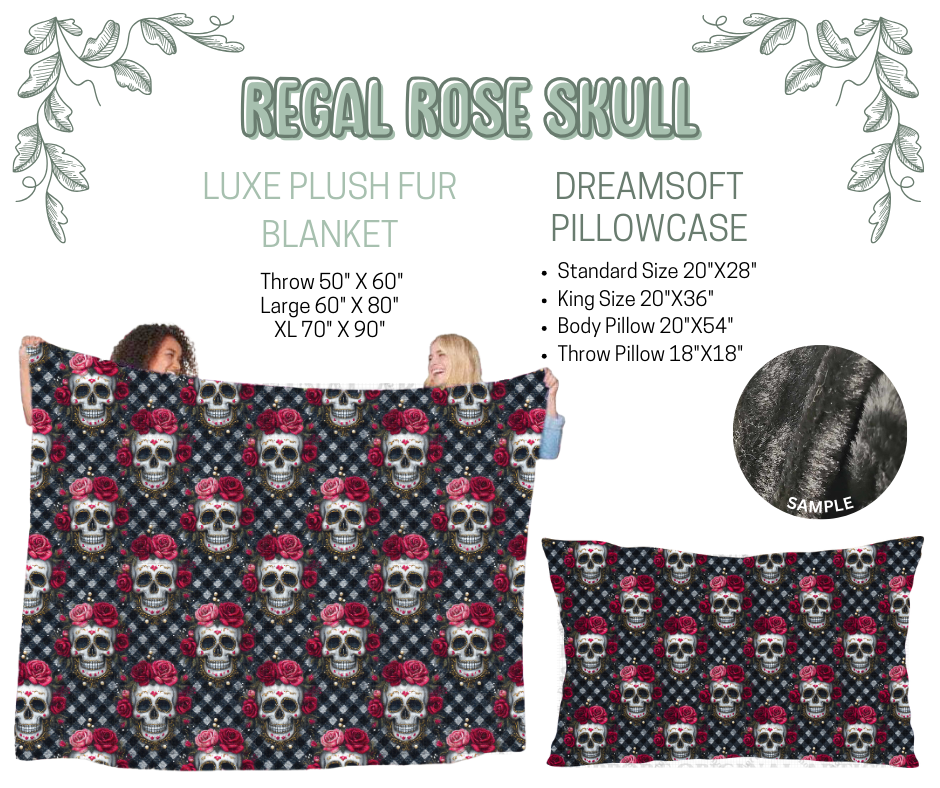 Preorder! Closes 10/9. ETA Dec. Regal Rose Skull Luxe Plush Fur Blanket and/or DreamSoft Pillowcase