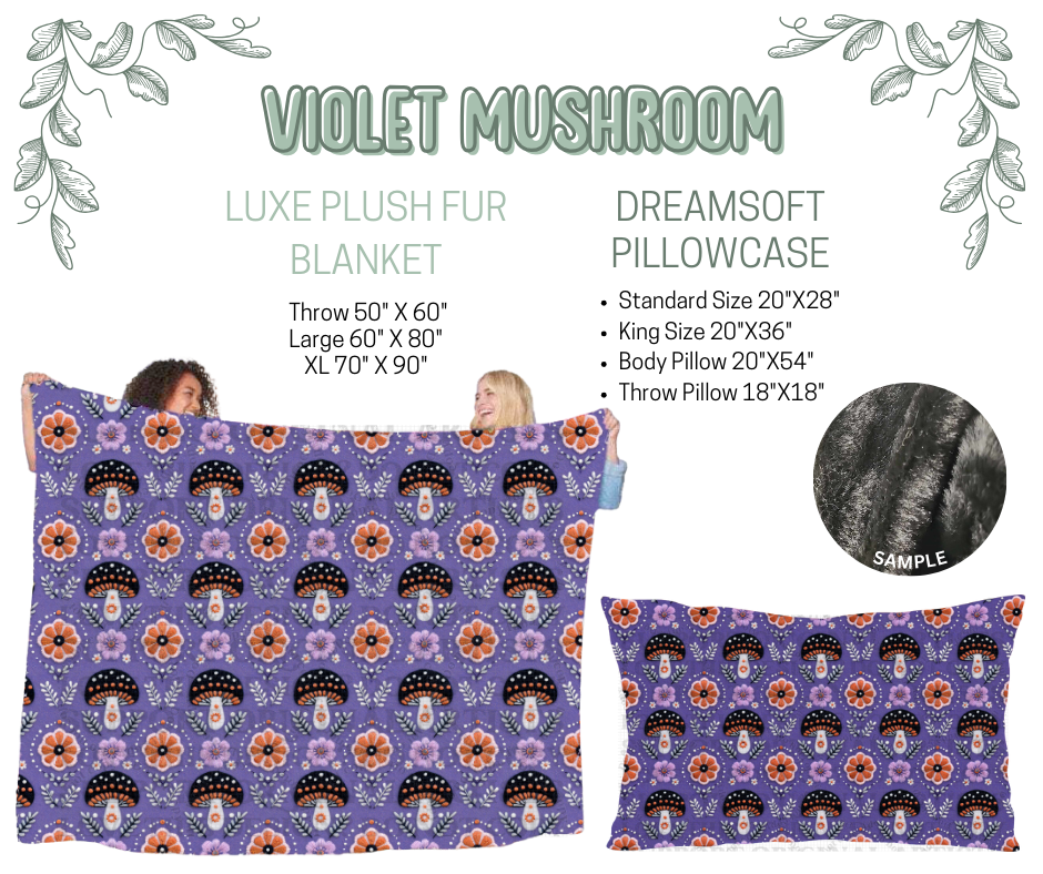 Preorder! Closes 10/9. ETA Dec. Violet Mushroom Luxe Plush Fur Blanket and/or DreamSoft Pillowcase