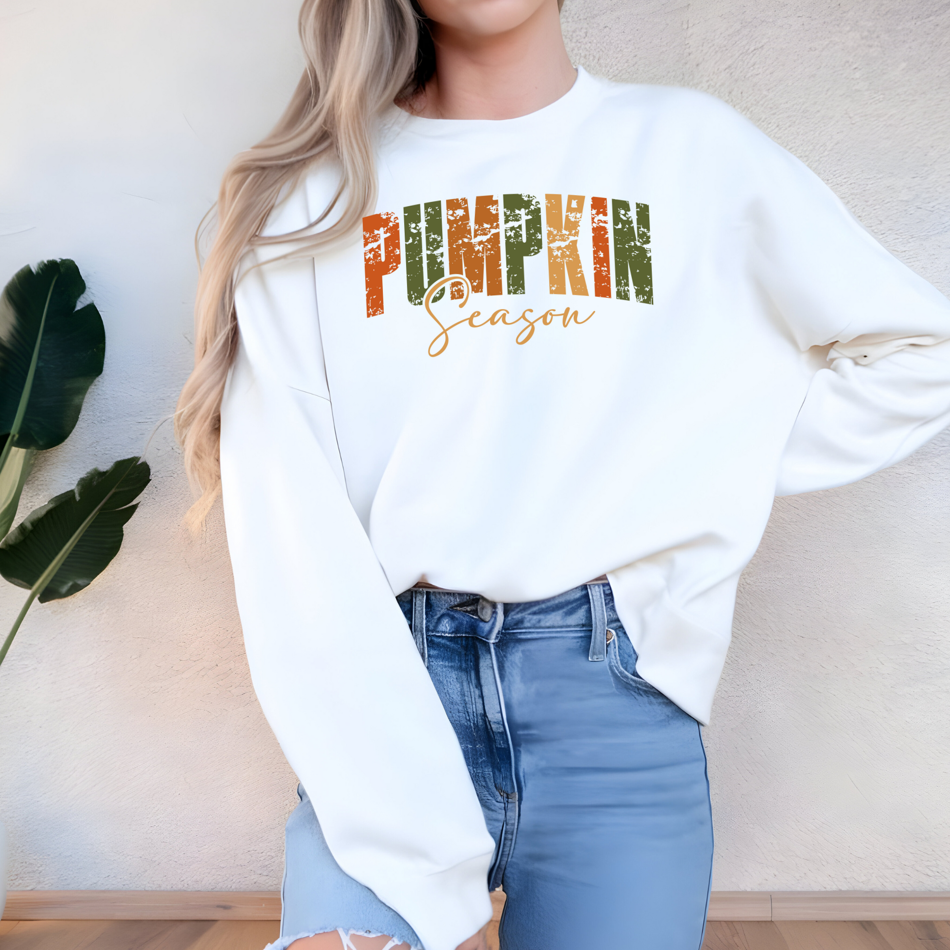 Celebrate cozy autumn vibes in style with our Pumpkin Season sweatshirt. Featuring bold rustic lettering in fall colors, this comfy pullover is perfect for pumpkin patch trips, coffee runs, or lounging all season long. Soft, warm, and effortlessly stylish—your go-to fall favorite!