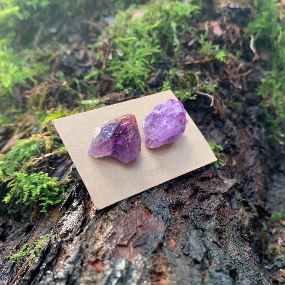 RAW AMETHYST EARRINGS (PAIR)