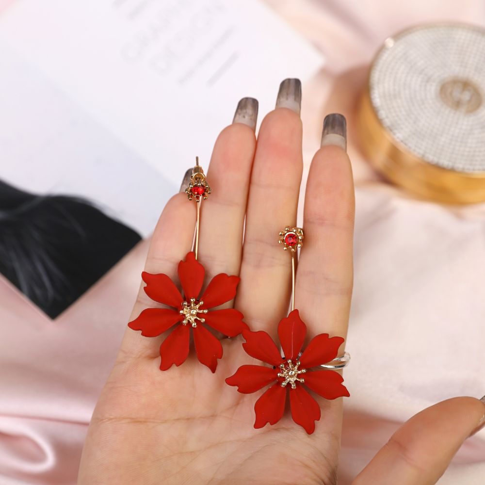 Introducing the epitome of graceful sophistication – the Red Dahlia Earrings. At the heart of this earring blooms a bold and strikingly red dahlia flower, elegantly suspended from its shimmering gold frame.