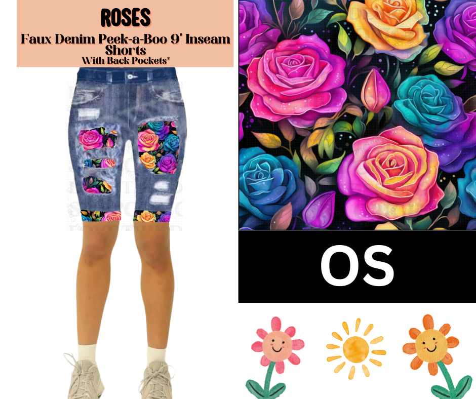 Jamaica Length Shorts in a Faux Denim Peek-a-Boo design. Functional back pockets.