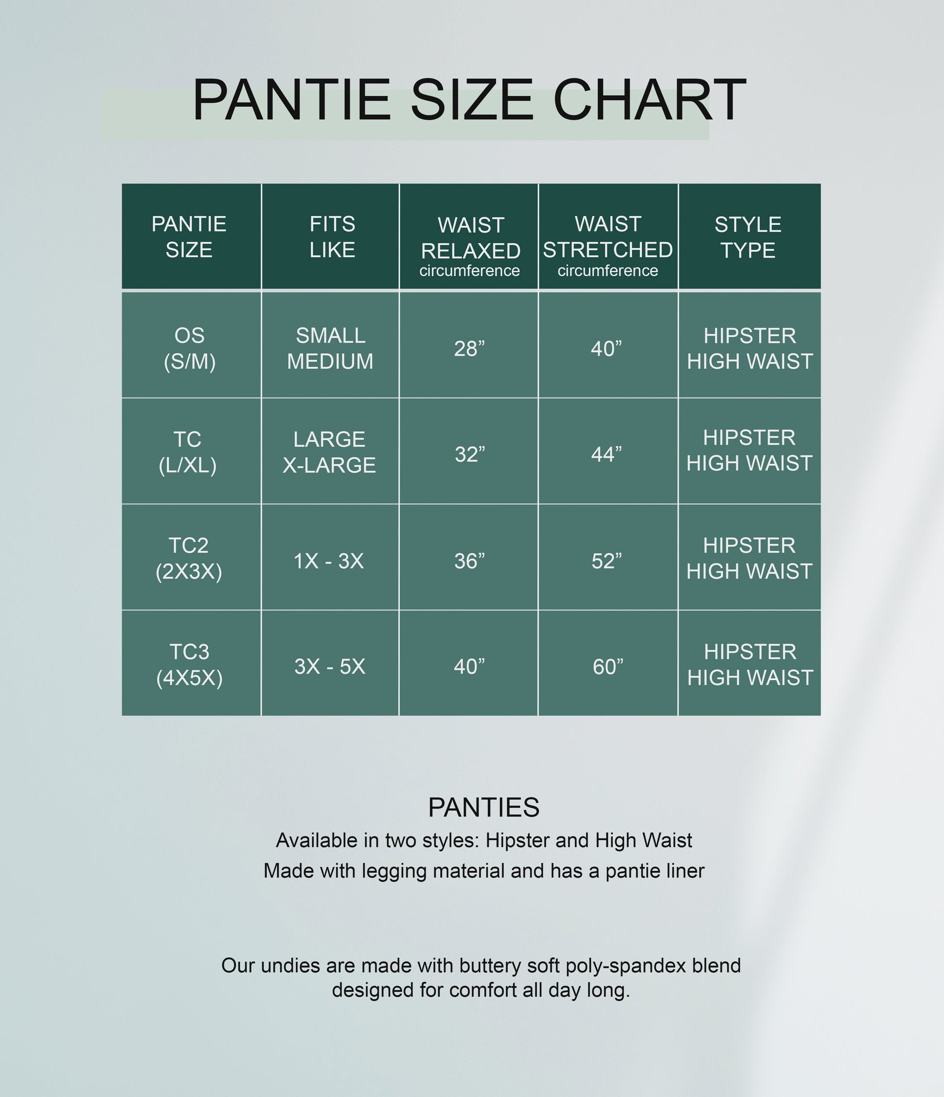 - The High Waist style is favorite among many for all day comfort and provides a flattering fit with a high-rise yoga style waistband ideal for ultimate coverage. Complete with a breathable cotton liner.