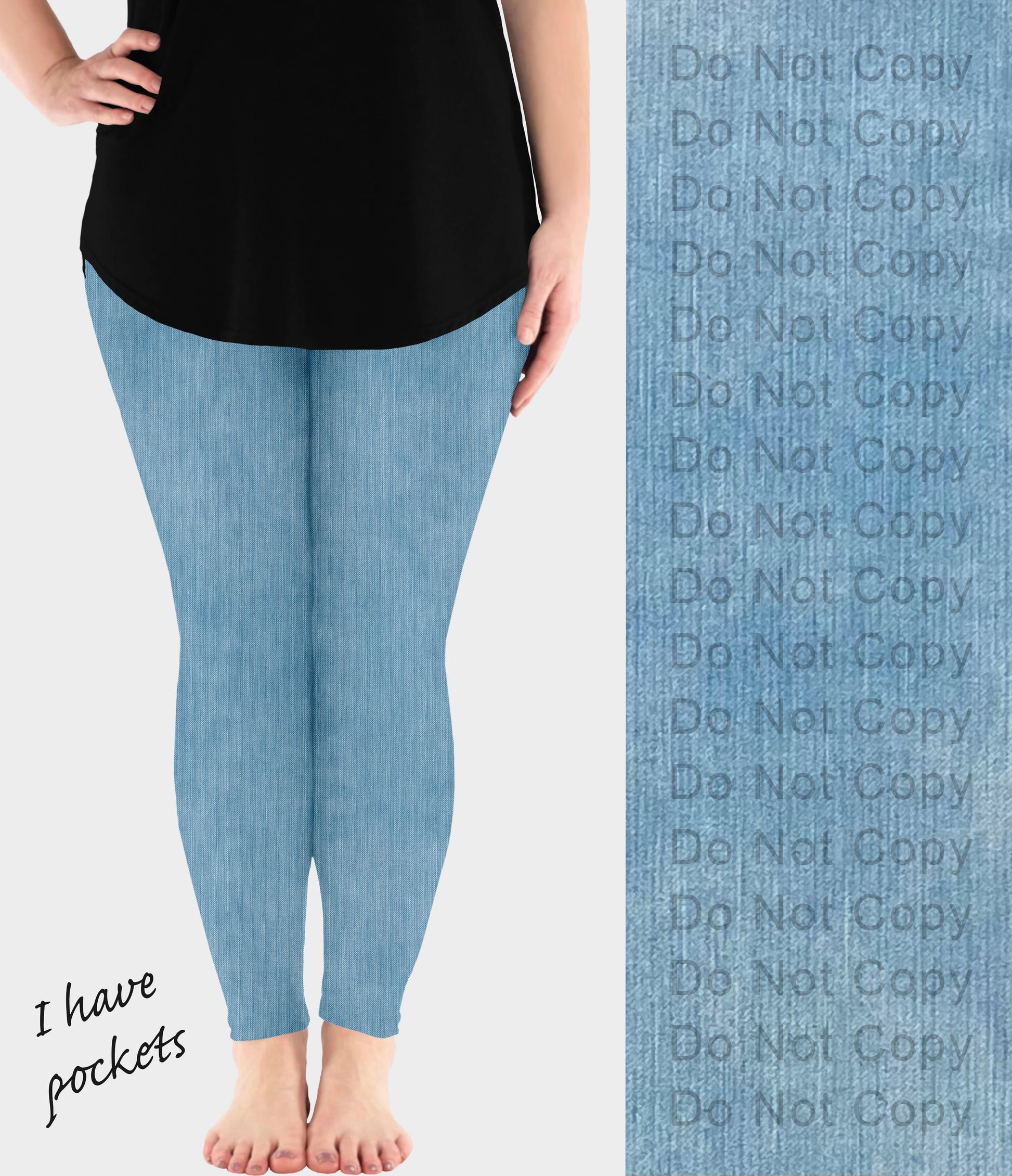 RTS - Light Blue Faux Denim Leggings w/ Pockets