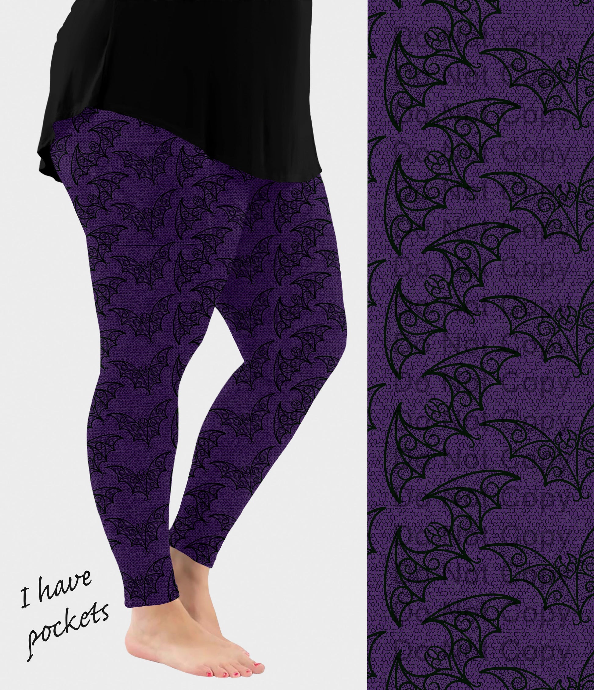 RTS - Purple Batty Lace Leggings w/ Pockets