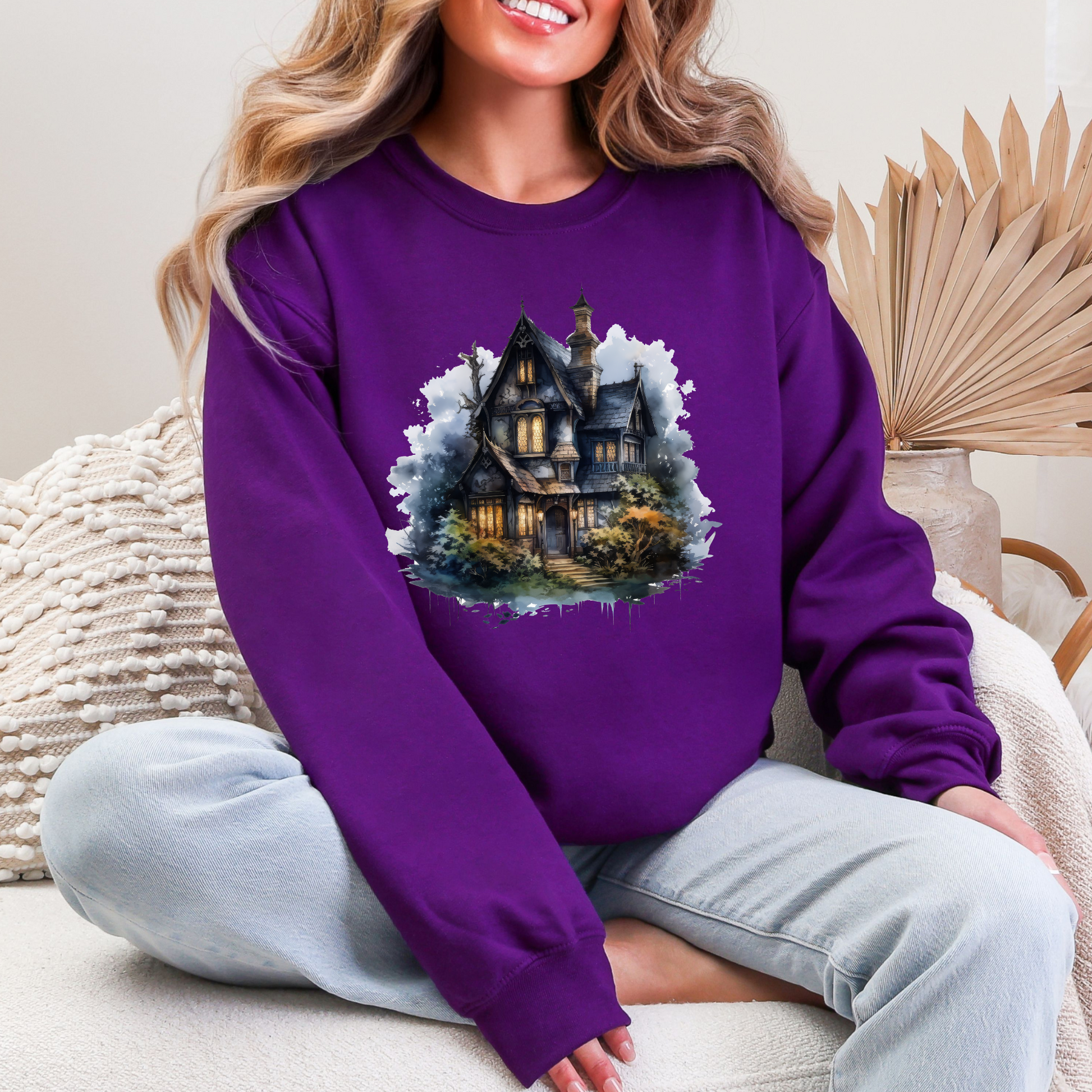 Step into spooky season in style with our Haunted House sweatshirt! Featuring a detailed gothic mansion design, this cozy sweatshirt is perfect for fall nights, Halloween parties, or just curling up with your favorite scary movie. Soft, comfortable, and designed to keep you warm all season long.